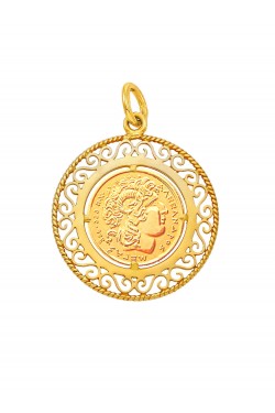 Μέγας Αλέξανδρος - Μενταγιόν Nόμισμα Φιλιγκράν, χρυσός 14k Χαρακτηριστικά Προϊόντος: Πλάτος 2,3 cm/ 0,91 inc Μήκος 2,3 cm/ 0,91 inc...