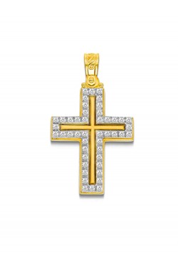 Double Cross with Zircons, in 14k gold Products Details: Width 1,90 cm/ 0,75 inc Length 2,90 cm/ 1,14 inc Material gold 14k...