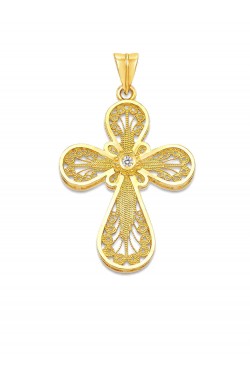 Royal - Filigree Handmade Cross with Zircon, in 14k gold Products Details: Width 2,70 cm/ 1,06 inc Length 3,50 cm/ 1,38 inc...