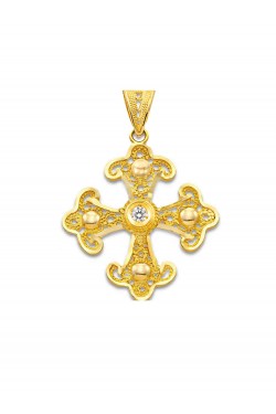 Justinian - Filigree Handmade Cross with Brilliant, in 18k gold Products Details: Width 1,90 cm/ 0,75 inc Length 2,55 cm/ 1,00 inc...