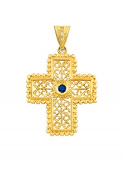 Filigree Handmade precious Stone Cross, in 18k gold Products Details: Width Small: 2,10 cm/ 0,83 inc Medium: 2,90 cm/ 1,14 inc Large:...