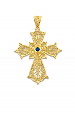 Filigree Handmade precious Stone Cross, in 18k gold Products Details: Width Small: 2,10 cm/ 0,83 inc Medium: 2,90 cm/ 1,14 inc Large:...