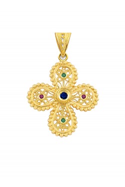 Justinian - Filigree Handmade precious Stones Cross, in 18k gold Products Details: Width 2,00 cm/ 0,79 inc Length 2,50 cm/ 0,98 inc...