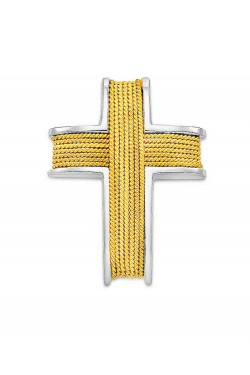 Handmade cross in minimal pattern, with double cross depiction, in gold and white gold 14k.
